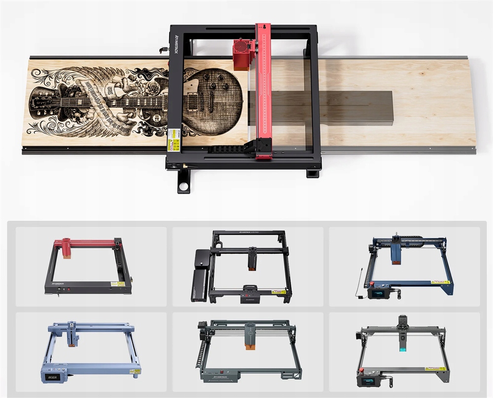 A: Звичайно. Його площа гравірування збільшена до 400*800 мм, і він також буде рухомим, що відповідає потребам гравіювання надзвичайно довгих і великих об’єктів. Наприклад, гітари, фотошпалери, фотошпалери, скейтборди, дерев'яні фоторамки, великі декорації та ін.