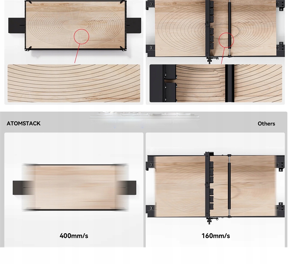 По-перше, робоча зона R5 була збільшена до 800*400*40 мм, повністю подолаючи обмеження області гравіювання. Гравірування надзвичайно довгих і великих предметів, таких як гітара, бейсбольна біта, подовжена наклейка на стіну, скейтборд тощо, принесе задоволення та комерційну цінність. По-друге, він підтримує гравірування та різання багатьох різних матеріалів одночасно, що принесло велику користь власникам магазинів і майстерень.